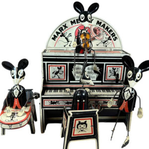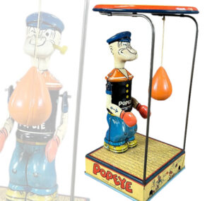 A colorful one day sale with a focus on international tin toys | Space & Robots, European tin wind-ups, Lehmann’s & Martin, Automobiles & Motorcycles, Pre-War Japanese toys, Comic characters, WW2 soldiers & figures, and more!