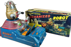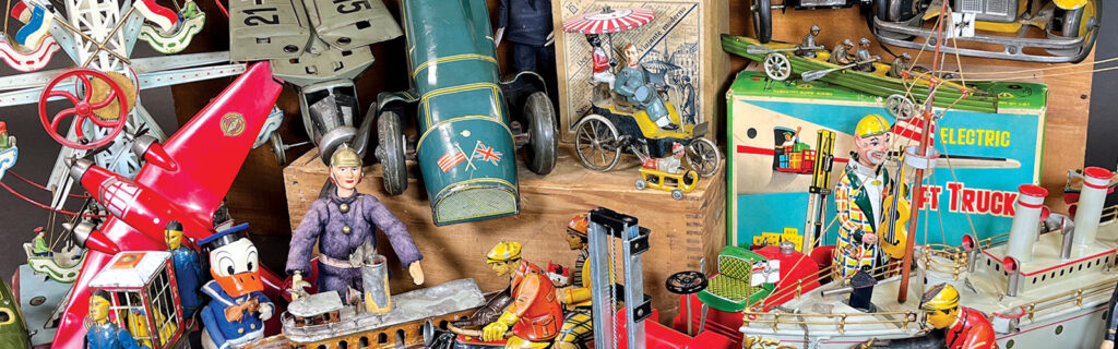 Highlighted by several dozen toys from the Italian Steno Tonelli collection, the auction features nearly 600 lots of tinplate wind-up toys and composition figures from throughout Europe and the USA. Including wonderful European tin Cars & Boats, Wind-up toys, Penny toys, Airplanes, Advertising, and much more!